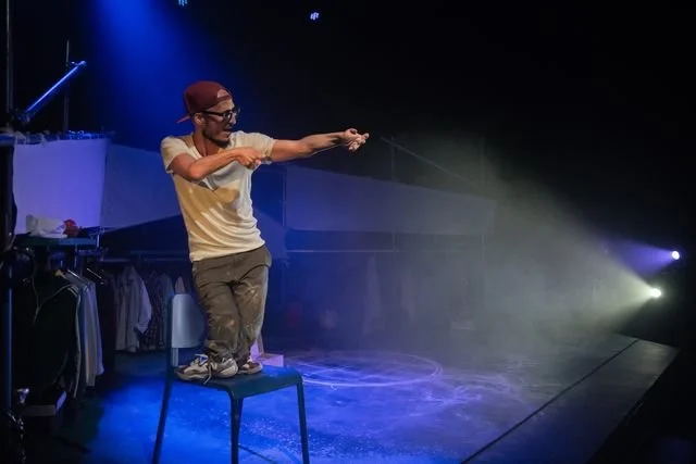 Each episode in his life was punctuated with Arabic and western music (a truly beautiful soundscape by Hamza Arnout) and the often-dreamlike quality of his memories captured in a kind of twisting slo-mo dance. I loved the way he brought in the audience to be his childhood friends. There were moments of laughter but also deeply moving honesty. The athletic Hamzeh bounded around the stage, putting costumes on and off with slippery ease belying any thoughts that his disability held him back. This was physical theatre at it most powerful.