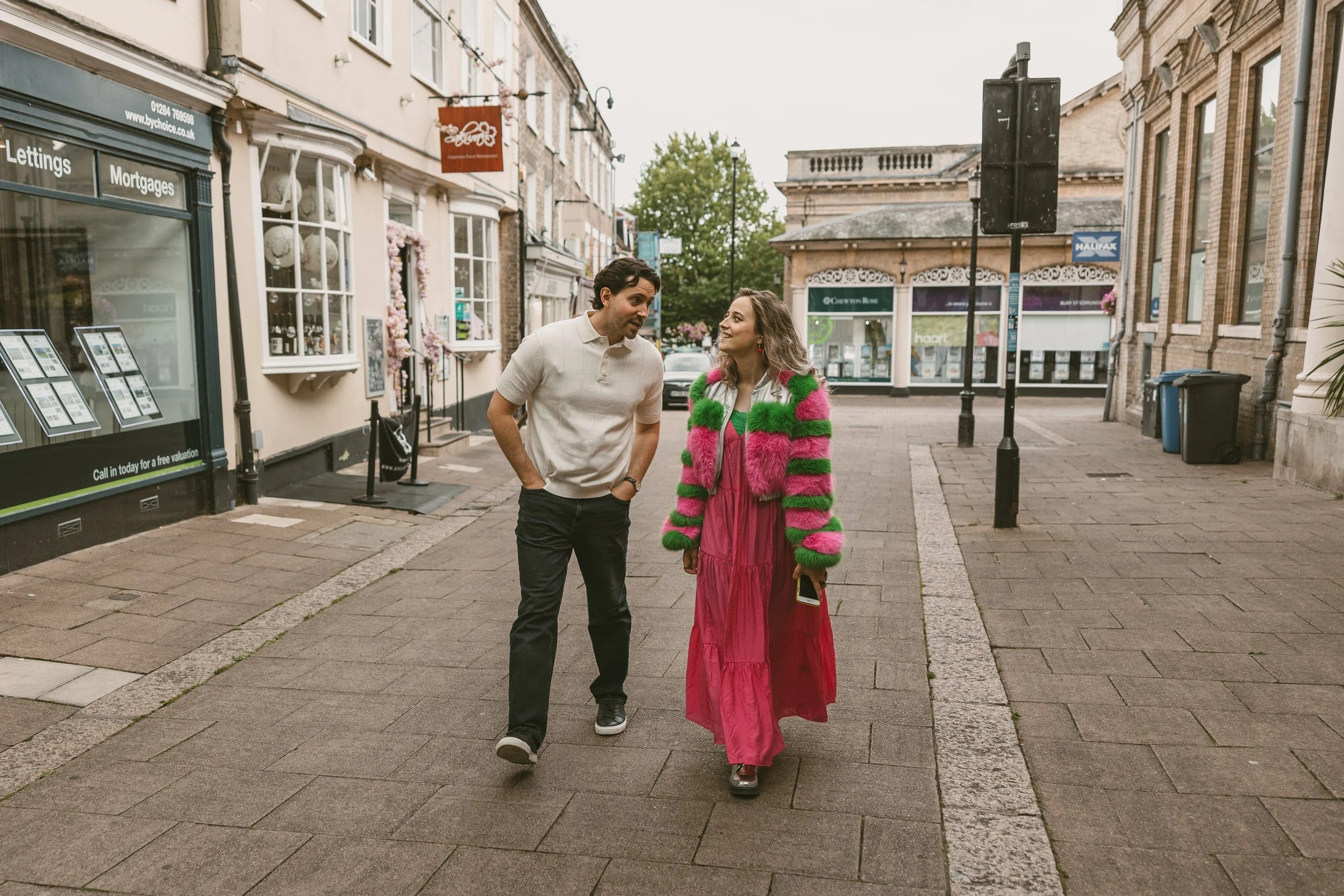 It is so easy to fall in love WITH Bury St Edmunds. But falling in love IN Bury can have its challenges.The gorgeous town was the setting for a quite remarkable drama experience – to call It simply a play cannot do justice to the Theatre Royal’s latest in-house show. ‘Steve and Steff Forever’ is a beautifully charming rom com presented as a promenade performance around the streets of Suffolk’s pride and joy. But this is a prom like no other. The town itself becomes a major character in what is technically a two-hander. The audience is led around the pretty streets by a very efficient band of theatre volunteers and at various points, we stop, and the next part of the drama unfolds.