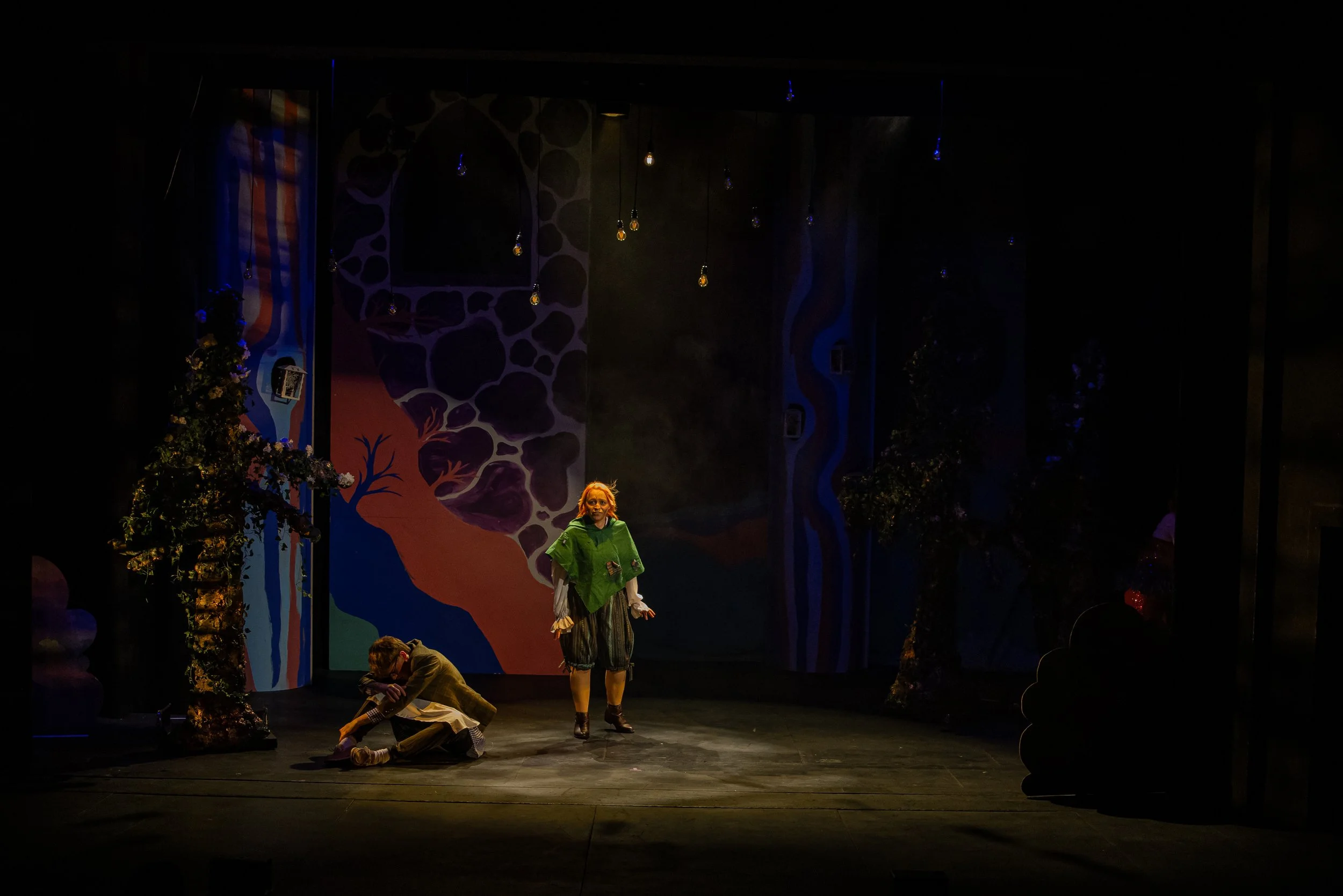 And let’s not forget, Little Red Riding Hood, -an adorable tweenager in Olivia Mornin -who with oodles of stage- time never flags in her comedy persona, undaunted by an encounter with gorgeously insidious Wolf (Wilf Offord is laugh-out -loud evil and stole all his scenes ) Rapunzel – Ansh Dhot - is air=headedly vacuous) in her Tower, makes a wonderfully tuneful prisoner with her great voice -and even has her own Prince ( a bedazzled cynical rendition from Jaeyen Lian). He is soon engaged in a mad rescue caper , to clamber up that golden hair. A rapturous clutch of tales collide – the action studded by remote characters – but Reuben Rackham’s , Mysterious Man was superbly convincing as a louche messenger from the ‘other side’. Oliver Kinston’s chippy annoying Steward – and it turns out murderous - inclusion is Everyman’s Servant with a grudge. And the entire ensemble would be literally nowhere without the Narrator. Once Patrick Tweedie has to abandon his overreach as Lord of the Action for a dusty death, the action springs into the Second Half Life where everyone loses , literally , the plot. Without their life script, and Patrick’s soothing Irish ? American? tones things go haywire - and how.